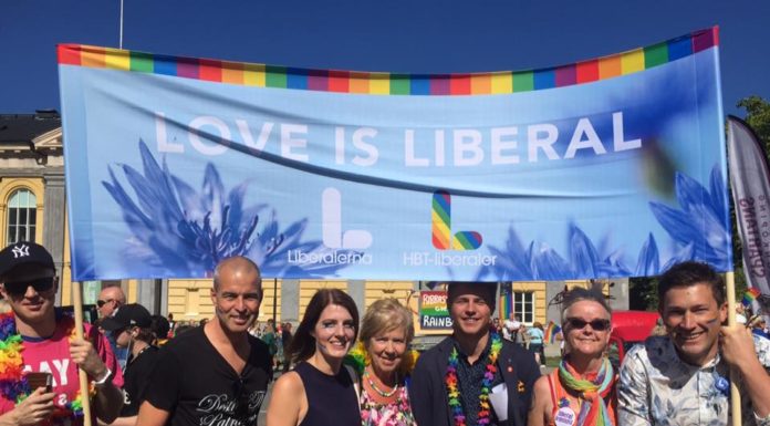 LUF, Liberalerna och HBT-liberaler tillsammans i Kalmar, som slog rekord med 7500 i paraden.